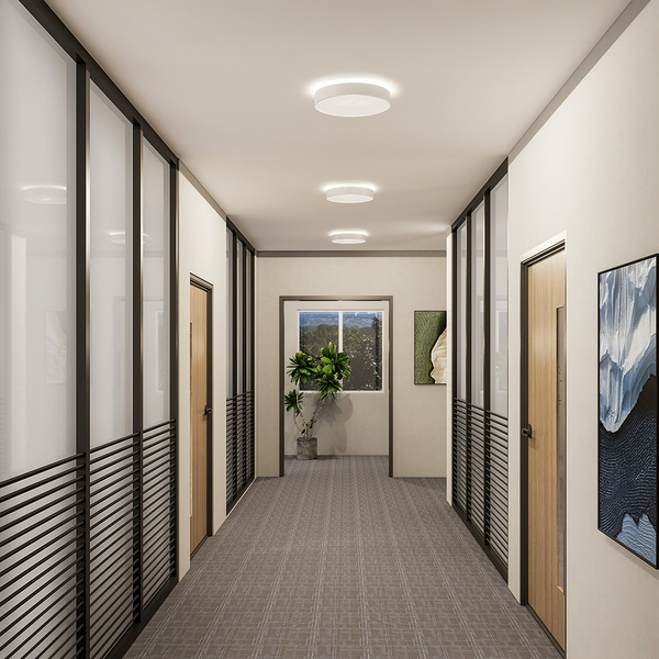 Zum Portfolio gehören Einlege- und Anbaupanels oder Rasterleuchten, die eine großflächige und blendfreie Beleuchtung ermöglichen. Feuchtraumleuchten und Hallenstrahler bieten optimale Lichtverhältnisse in Produktionsstätten, Lagerhallen und Werkstätten. Stromschienensysteme, Downlights und Strahler sorgen für gezielte Beleuchtungskonzepte in Shops und Ausstellungsräumen.